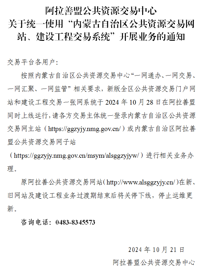 关于统一使用“内蒙古自治区公共资源交易网站、建设工程交易系统”开展业务的通知