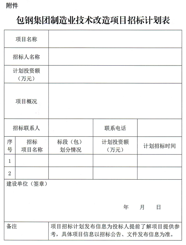 包头市工业和信息化局关于包钢集团制造业技术改造项目招标计划提前发布的通知