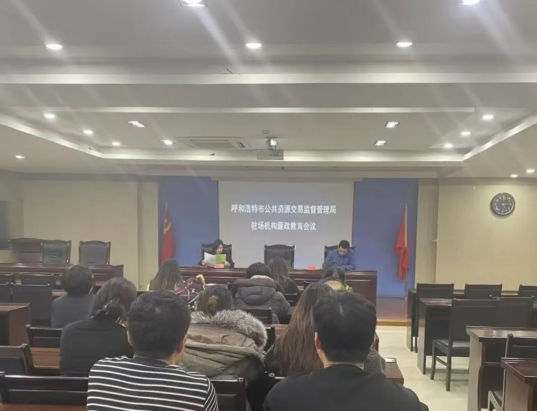 为常态化做好公共资源专项整治工作,落实好自治区公共资源交易中心关于“6+1”监管全覆盖要求,1月20日呼和浩特市公共资源交易监督管理局组织驻场机构召开了廉政警示教育大会。